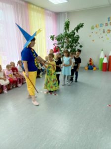 Пришли поздравить ребят сказочные персонажи Незнайка и Фея Знаний. Дети вместе с гостями праздника участвовали в конкурсах, играх-соревнованиях, отгадывали загадки, танцевали, много шутили и смеялись.