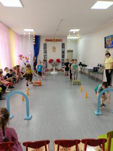 Под песню «День Победы» малыши маршировали и выполняли упражнения.