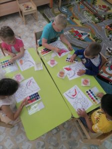 В завершение занятия ребята с удовольствием сделали коллективную работу «Праздничный салют»
