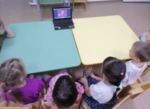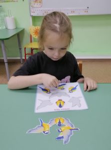 Ребята с большим интересом рассмотрели изображения синички, отметив ее яркое желтое брюшко, черную шапочку и щечки.