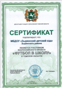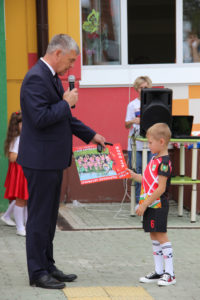 1 сентября 2022 года состоялось торжественное открытие футбольного клуба “Спортики” МБДОУ “Зырянский детский сад” Зырянского района, созданного в рамках Национального проекта “Футбол в школу”. На открытии присутствовал Глава Зырянского района Алексей Геннадьевич Мочалов, а также уважаемые гости: заместитель начальника Департамента общего образования Томской области Елена Вениаминовна Вторина, председатель Думы Зырянского района Владимир Иванович Герасимов, руководитель Управления образования Администрации Зырянского района Алексей Артемович Алексеев, председатель профсоюзной организации работников образования Зырянского района Виктория Леонидовна Евдокимова. Юным спортсменам пожелали удачи, многократных побед, стать чемпионами и завоевывать только золотые медали, а также были вручены памятные подарки. В сою очередь юные футболисты пообещали хорошо тренироваться, и продолжать заниматься футболом и тогда, когда пойдут в школу.