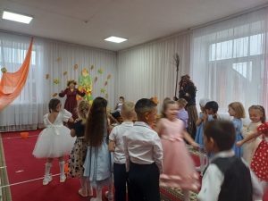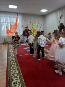 Осень принято провожать осенними праздниками. А праздник в детском саду – это всегда удивительные чудеса, волшебные краски, звонкий смех воспитанников, море улыбок и веселья. Традиционно в конце октября, в нашем детском саду проходит праздник Осени. Для ребят это долгожданный, яркий, увлекательный и радостный праздник. Дошколята с нетерпением ждут осенних развлечений, и не зря, ведь они прошли очень весело и интересно. Подготовка к мероприятиям началась задолго до начала утренников. Дети с педагогами и специалистами разучивали стихи, песни, танцы и украшали группы. А ярко оформленный музыкальный зал детского сада поднял настроение детям. Интересные сценарии праздников, не давали расслабиться детям ни на минутку. В гости к детям пришла Осень со своими осенними подарками. Яркая и веселая она водила с ребятами хороводы, играла, загадывала загадки, пела песни и танцевала. Также на праздник приходили Баба – Яга и Пугало огородное, которые пытались испортить праздник, но благодаря дружбе и хорошему настроению детей, у них ничего не получилось. А самым ярким и запоминающимся эпизодом во всех утренниках стал сюрпризный момент – гостинцы для всех ребят – подарок осени!