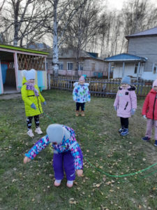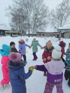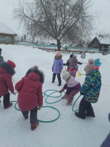 В ноябре в топ-игр была игра “Тише едешь, дальше будешь”. Разучили игру еще в ноябре, правила просты и доходчивы. Играли в свободное время и во время физкультурных занятий. Прошли карантины, морозы. И наконец вынесли игру на улицу. Ведущего выбирали с помощью считалочки. Играли очень долго, всем было очень весело, и пока все не побыли в роли ведущего, игра не закончилась. Дети очень соскучились по прогулкам и играм.