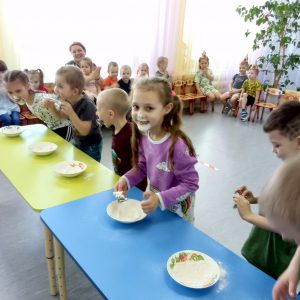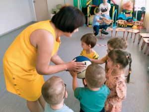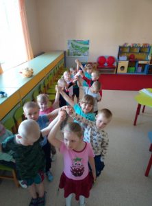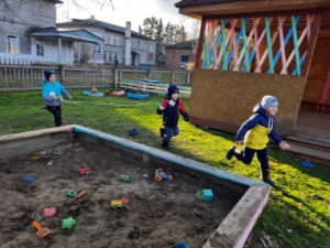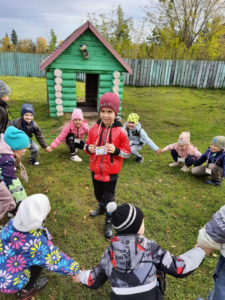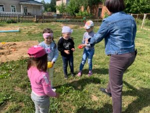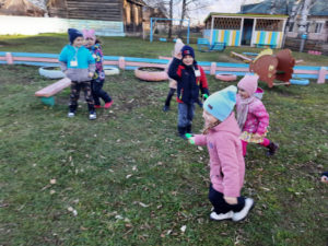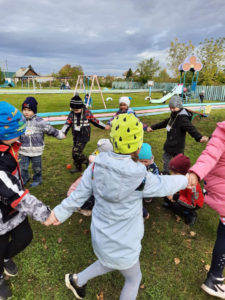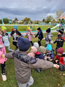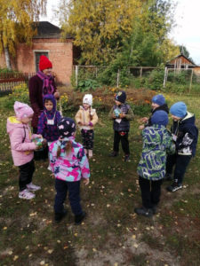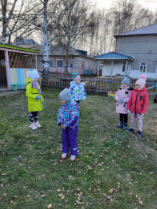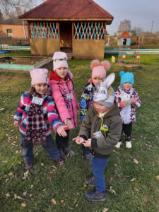 Игра по выбору в ноябре — «Картошка». Выбрали её, т.к. хотели закончить осенний месяц этой игрой. Играли с детьми старшего возраста. По обычаю начали играть в помещении, разобрали правила, выучили слова, сделали маску “Картошки” и пошли на прогулку играть. Дети любят играть в любом возрасте и играют с большим удовольствием.