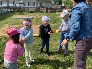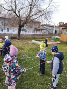Наконец-то морозы отступили, участки подсохли и мы с детьми закружились в хороводе подвижных игр! Игрой марта стала игра “Весна пришла”. Игру разучивали в помещении и ждали хорошей погоды. Для “Весны” сделали корону. Дети выполняли движения в соответствии со словами и с удовольствием играли т.к. любят игры, в основе которых догонялки.