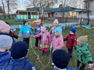 Игра по выбору  в октябре. Игру выбрали “Рыбаки и рыбки”. Разучивали игру как обычно в помещении, из  оборудования только скакалка, немного потрудились над тем, чтобы выучить слова. Условия игры не меняли. В общем игра трудности не вызвала. Самое главное в осенний период дождаться подходящей погоды. И когда погода позволяет, мы с удовольствием играем в подвижные игры. Дети получили заряд бодрости и много положительных эмоций.