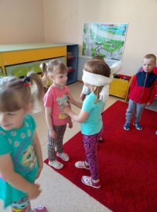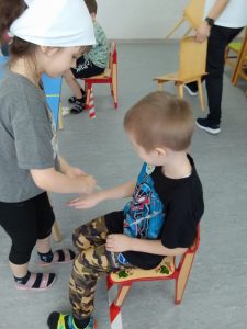 Игрой по выбору в декабре стала “Поменяйся местами”. Разучили игру, вместо стульчиков, конечно же, взяли обручи. Ведущего выбрали по считалке. На “признак” – “У кого дома есть нарядная елка”, ринулись все. Следующий ведущий был тот, кому не досталось места в обруче и уже он придумывал свой “признак”, и, конечно же, тоже был связан с “Новым годом”. Самые незабываемые впечатления с новогодних праздников, еще совсем свежи в памяти. Было очень весело.