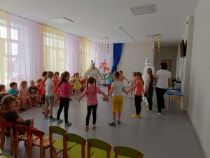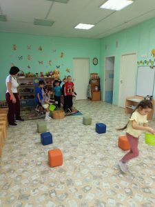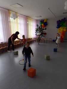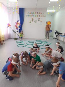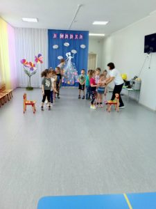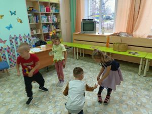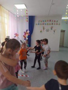 Ежемесячно проводятся подвижные игры. Каждый месяц соответствует своему определенному цвету: Январь – синий соответственно игра “Снегурочка”, а также игра по выбору “День и ночь”. Февраль – белый, игра “Зайка беленький сидит” и “Белые медведи”. Март – голубой, игра “Ручейки, Озера, дождь”, “Гори, гори ясно”.