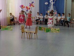 На кануне 8 марта в детском саду прошло мероприятие «А ну-ка, девочки». Девочки соревновались  в сервировки стола, стирке белья, сматывании ниток. И даже ставили прививки.