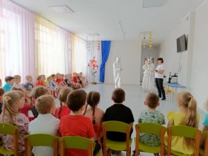 Дети с большим удовольствием соревновались на просторах «космоса», проявляя находчивость и смекалку, разгадывали загадки, подружились с сказочным персонажем «Робиком».