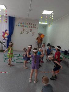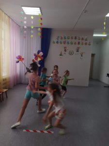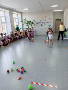 В рамках плана 19.06.2023г. пошли беседы о пользе утренней гимнастики, разгадывание загадок на спортивную тематику, а также спортивные игры: перенеси воланчик, ведение мяча между препятствиями и т.д.