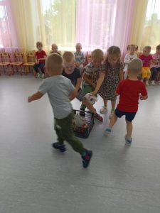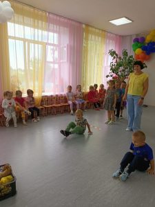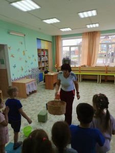 Продолжаем проект. Разучили с детьми игру “Арбузный переполох”. При разучивании использовали один мяч. Дети активно принимали участие в игре, у кого падал “арбуз”, выходили из игры. На прогулке, играя в игру, усложнили тем, что добавили мячи, взяли вместо одного сразу три. Получилось очень подвижно и весело. Дети с большим азартом играли в игру “Арбузный переполох”, которая доставила много положительных эмоций.