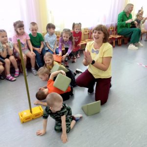 Продолжаем играть с детьми в 4D игры. Сегодня играли в игру месяца “Мяч по кругу” и “Часы пробили ровно час”. Дети с большим удовольствием играют в подвижные игры.