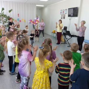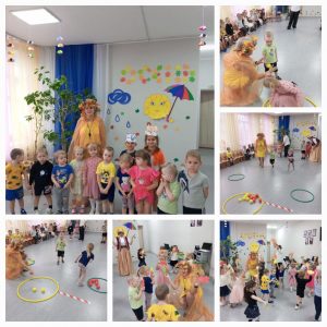 Игра месяца “Дождик”, т.к. условие мая – “МОКРЫЕ” ИГРЫ , в которых присутствует вода во всех ее состояниях и проявлениях, например, дождь. Сделали маску, разучили слова. Ведущего – “дождика” выбирали по считалке. Дети с большим удовольствием поиграли во время прогулки.